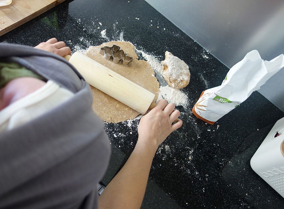 Ich habe das große Glück, dass es mir nur eine Woche nach der Geburt unseres Buben super blendend geht. Ja, ich fühle mich fitter als eine Woche vor der Geburt. Meine Rückenschmerzen sind tatsächlich fast verschwunden, ich kann mich im Bett wieder umdrehen und auch der Ischias zwickt um einiges weniger. Herrlich! Und so stand ich heute Morgen sogar mit meinen beiden Jungs in der Küche und habe Kekse gebacken. Ein toller Moment – J.Boy, mein Helfer und Augustbub das erste Mal im Tragetuch. Anschließend bin ich aber wieder ganz brav und flott ins Bettchen und habe eine lange Mittagspause bzw. einen ausgiebigen Mittagsschlaf mit meinen Männern gemacht.